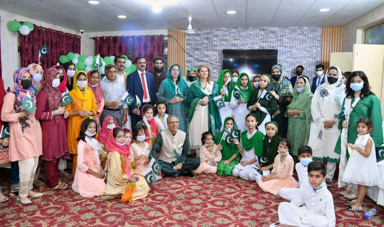 On the occasion of Dimond Jubilee of Pakistan, today his Excellency President of Islamic Republic of Pakistan, Dr. Arif Alvi visited Kashana Rawalpindi along with First Lady Ms. Samina Alvi and His family members. They spent their precious time with the resident girls of Kashana. The First Lady distributed gifts among the resident girls, then they participated in cake cutting ceremony with the girls. His excellency, the President appreciated Team Social Welfare Rawalpindi for organizing this wonderful event.