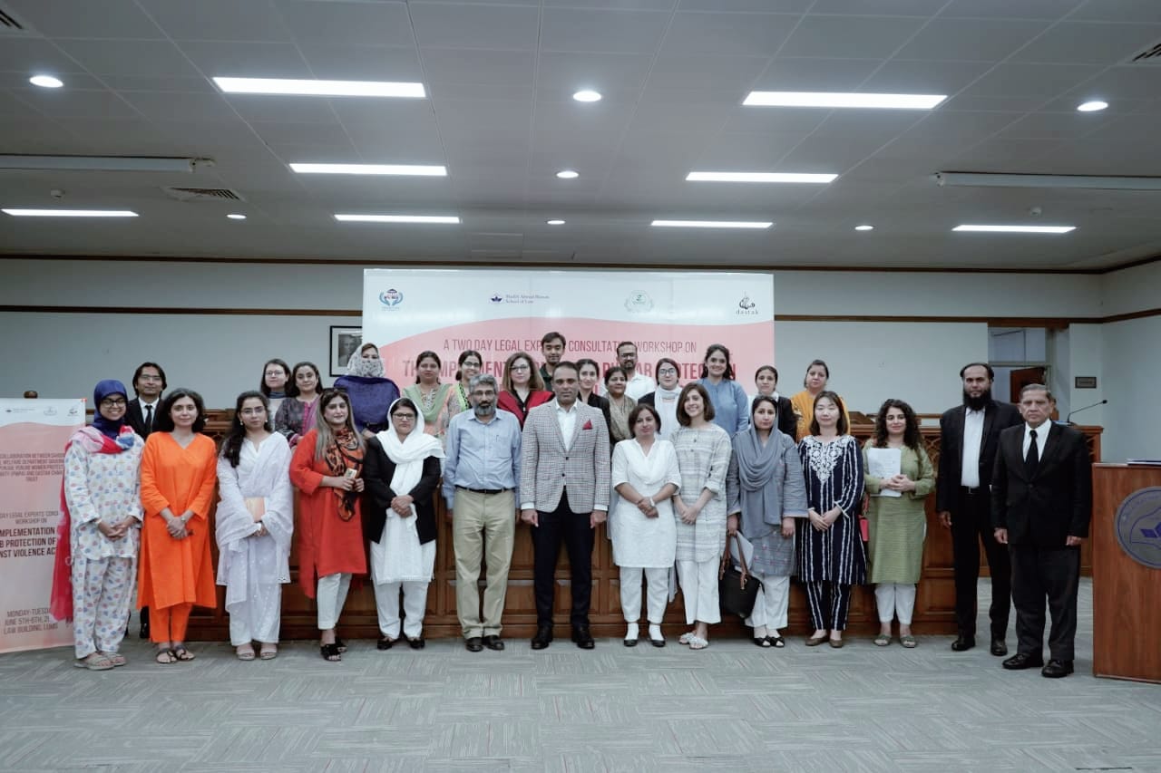 Department of Social Welfare is collaborating with Dastak Charitable Trust and Shaikh Ahmad Hassan School of Law at LUMS to hold a consultation of legal experts on the Punjab Protection of Women Against violence Act. The consultation will pave way for drafting a holistic set of Standard Operating Procedures for the uniform implementation of the act all across Punjab. Director General Social Welfare Department, Mr. Muddassir Riaz Malik, headed the technical session on the effective and efficient of District Women Protection Committees.