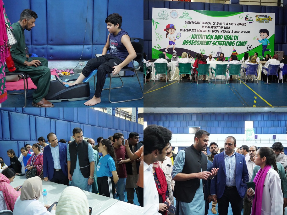Social Welfare and Bait-ul-Maal Department, Punjab organized 3-day Nutrition and Health Assessment Screening Camp for the young athletes who came to the summer camp. A team consisting of nutritionists conducted nutritional profiling of children practicing various sports in the sports department's gymnasium hall, Gaddafi Stadium, Lahore. Adviser to Chief Minister Punjab on Sports and Youth Affairs Wahab Riaz inaugurated this three-day camp in the presence of Director General Social Welfare & Bait-ul-Maal Muddassir Riaz Malik. He made a detailed inspection of the camp and appreciated the efforts of the Department