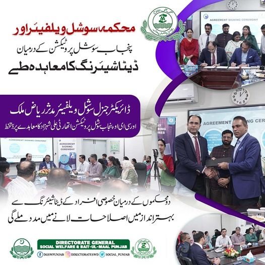 The Social Welfare Department signed an agreement with the Punjab Social Protection Authority to facilitate the sharing of data of person with disabilities. The agreement, known as the data sharing protocol agreement, was signed by Muddassir Riaz Malik, Director General of Social Welfare and Ali Shahzad, CEO of the Punjab Social Protection Authority. This collaborative effort aims to enhance the efficient management of services and facilities available to persons with disabilities. Muddassir Riaz Malik, the DG of Social Welfare expressed that this data sharing initiative will enable individuals with disabilities to directly benefit from the various schemes implemented by the Punjab Social Protection Authority.