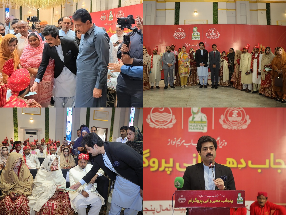 A grand mass wedding ceremony was organized in Bahawalpur under Chief Minister Punjab Maryam Nawaz Sharif’s “Dhee Rani Program – Phase 3.” A total of 174 deserving couples tied the knot, including 6 Christian, 3 Hindu, and 2 differently-abled couples. Each couple received PKR 200,000 through ATM cards from the Chief Minister as a token of support and goodwill. Provincial Minister for Social Welfare and Bait-ul-Maal, Sohail Shaukat Butt, attended as the chief guest, while the event was also graced by MPA Saadia Bilal, Additional Secretary Amina Munir, Deputy Commissioner Dr. Farhan Farooq, DPO Hassan Iqbal, and officers of the Social Welfare Department.