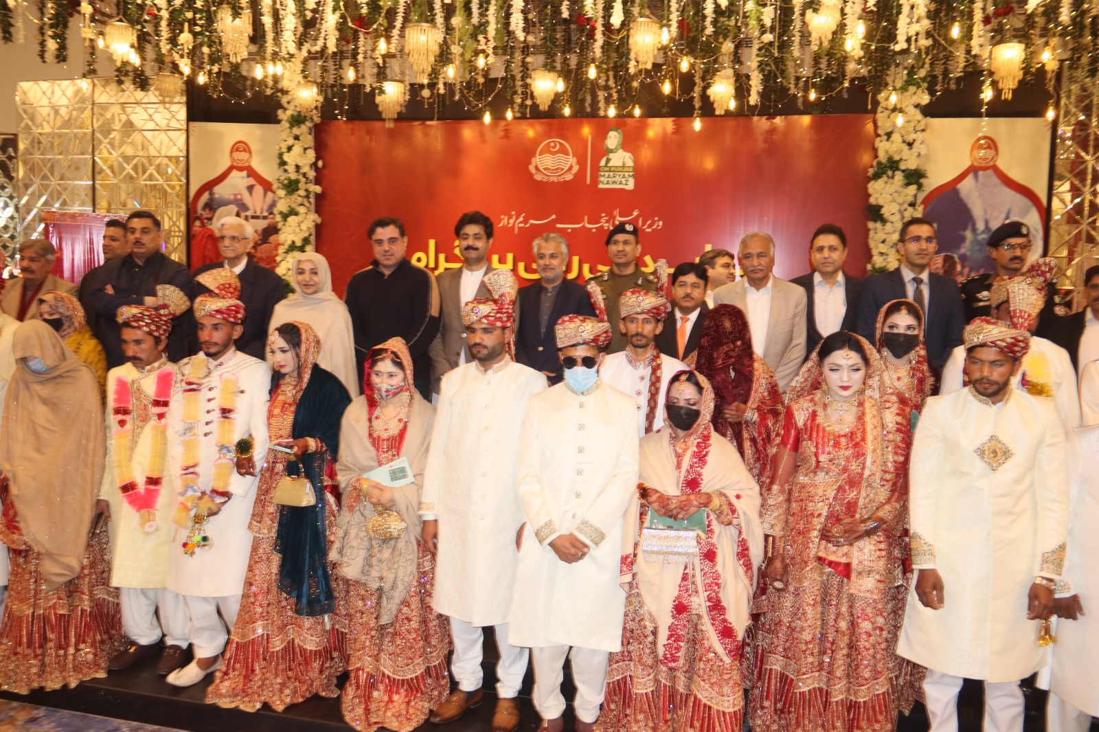 A grand mass wedding ceremony under the CM Punjab "Dhee Rani Program" was held in Gujranwala, where 67 couples tied the knot. The event was attended by the Provincial Minister Social Welfare and Bait-ul-Maal Punjab, Sohail Shaukat Butt, and the Provincial Minister Housing and Urban Development, Bilal Yasin, who congratulated the newlyweds and gave each couple a salami of Rs 100,000 along with gifts worth Rs 200,000. Several dignitaries, including Commissioner Gujranwala Syed Naveed Haider Shirazi, Deputy Commissioner Naveed Ahmed, Director General Social Welfare Muhammad Tariq Qureshi, and Director Social Welfare Irshad Waheed, were also present. Members of the Assembly, including Chaudhry Mahmood Bashir Virk, Syeda Nousheen Iftikhar, Imran Khalid Butt, Bilal Farooq Tarar, Chaudhry Naveed Ashraf, Chaudhry Arshad Warraich, Shazia Farid, and Saira Afzal Tarar, attended the event and expressed their support for the initiative. The ceremony brought together families from various districts, with 14 couples from Gujranwala, 27 from Hafizabad, 5 from Narowal, 5 from Gujrat, 8 from Sialkot, and 8 from Mandi Bahauddin. Notably, two non-Muslim couples also participated, showcasing the program's inclusivity. The event featured a police band performance, and guests were treated to a sumptuous meal. Minister Sohail Shaukat Butt conveyed his congratulations on behalf of Punjab Chief Minister Maryam Nawaz, emphasizing the Punjab government’s commitment to social welfare and community support through initiatives like "Dhee Rani."