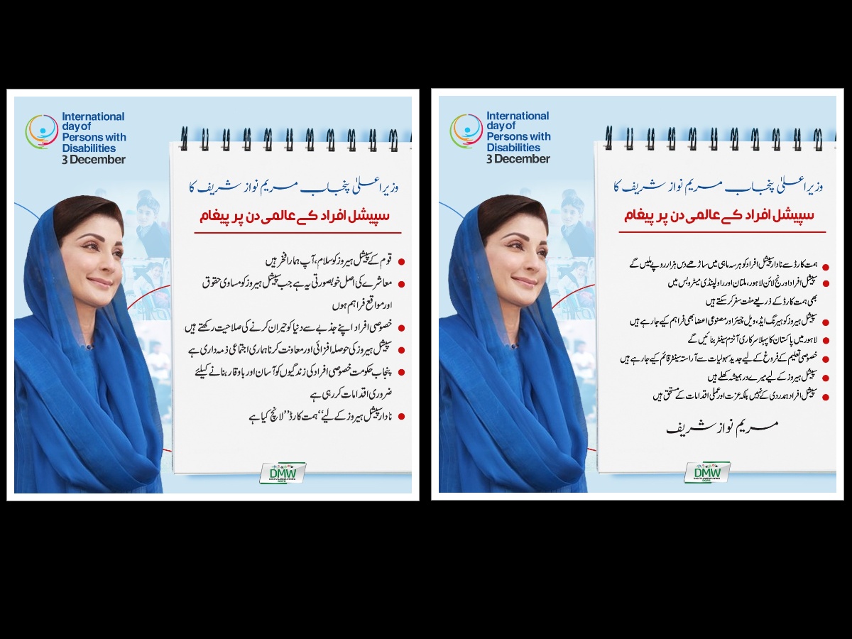 Chief Minister Punjab Maryam Nawaz Sharif, message on the International Day of Persons with Disabilities,
