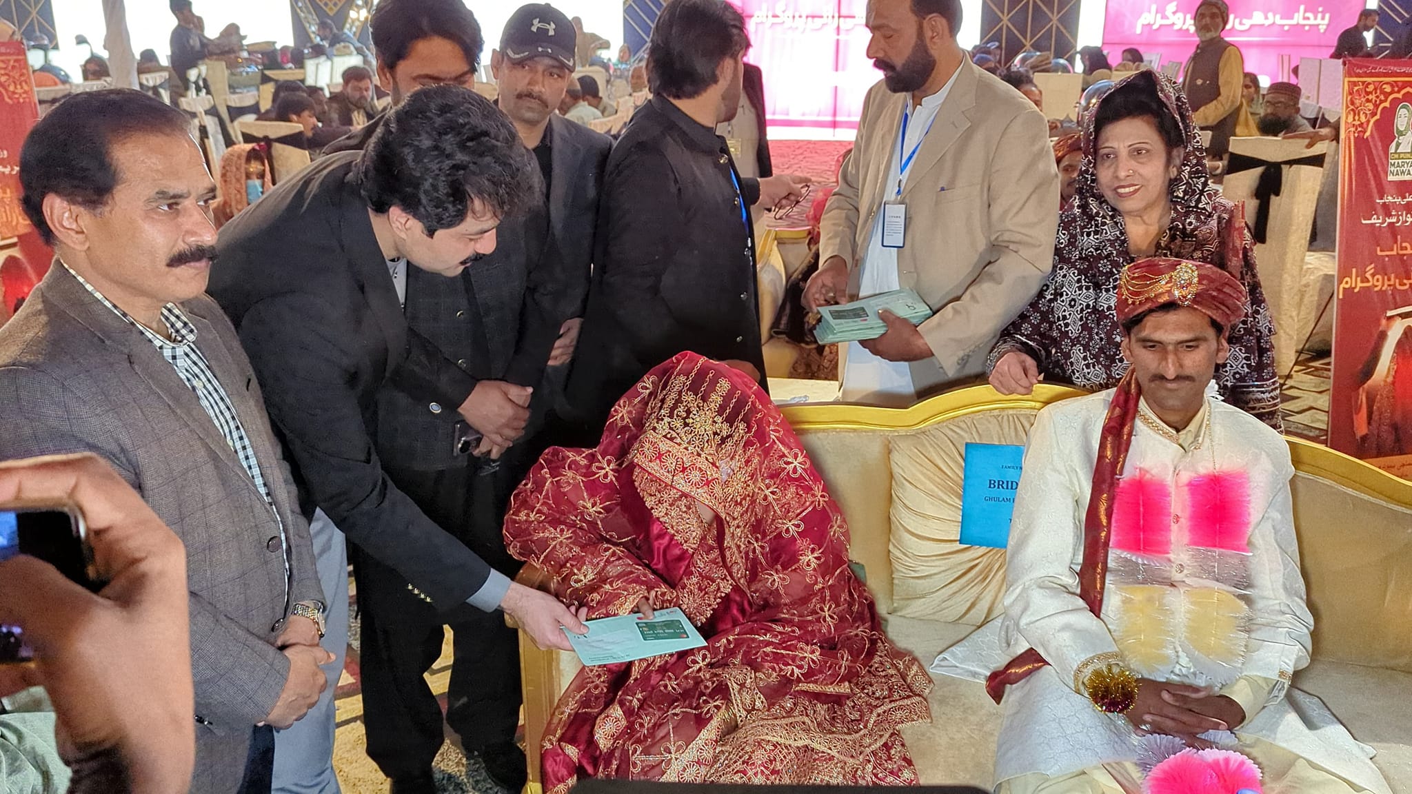 Under the Chief Minister of Punjab’s "Dhee Rani Program," a mass wedding ceremony was organized by the Social Welfare & Bait-ul-Maal Department Punjab for 61 couples in Khanewal. The Provincial Minister Social Welfare & Bait-ul-Mal Punjab, Sohail Shaukat Butt, attended the event as the chief guest. MNA Muhammad Khan Daha, Members of the Provincial Assembly Rana Muhammad Saleem Hanif, Barrister Osama Fazal, Chaudhry Zia-ur-Rehman, Rana Babar Hussain, Secretary Social Welfare Javed Akhtar Mahmood, Deputy Commissioner Khanewal Salma Suleman, and DPO Khanewal Ismail Khadak also participated in the event. The Provincial Minister congratulated the newlywed couples on behalf of the Chief Minister Punjab and expressed his best wishes. Sohail Shaukat Butt also presented Salami cards and wedding gifts to all the couples.