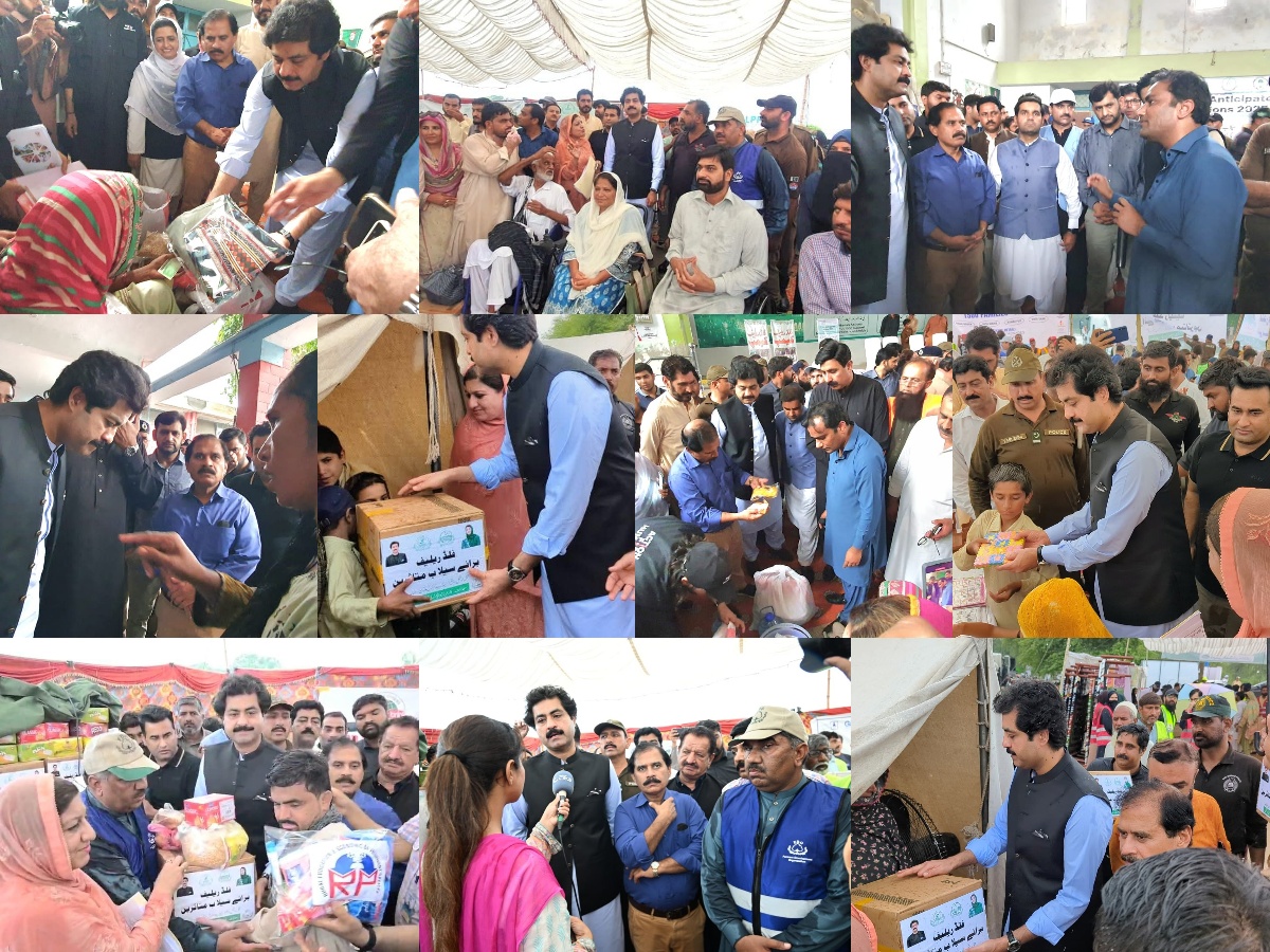 Under the special directives of Chief Minister Punjab Maryam Nawaz, large-scale relief operations are underway for flood-affected families. Provincial Minister for Social Welfare & Bait-ul-Maal Punjab, Sohail Shaukat Butt, along with Secretary Social Welfare Javed Akhtar Mahmood, visited relief camps in Multan and Muzaffargarh to review ongoing activities and distribute essential items among the affected families. In Multan, they inspected the Qasim Bela and Langrial flood relief camps, while in Muzaffargarh they visited the camp established at Government Comprehensive High School, where ration and other necessities were distributed to the flood victims.