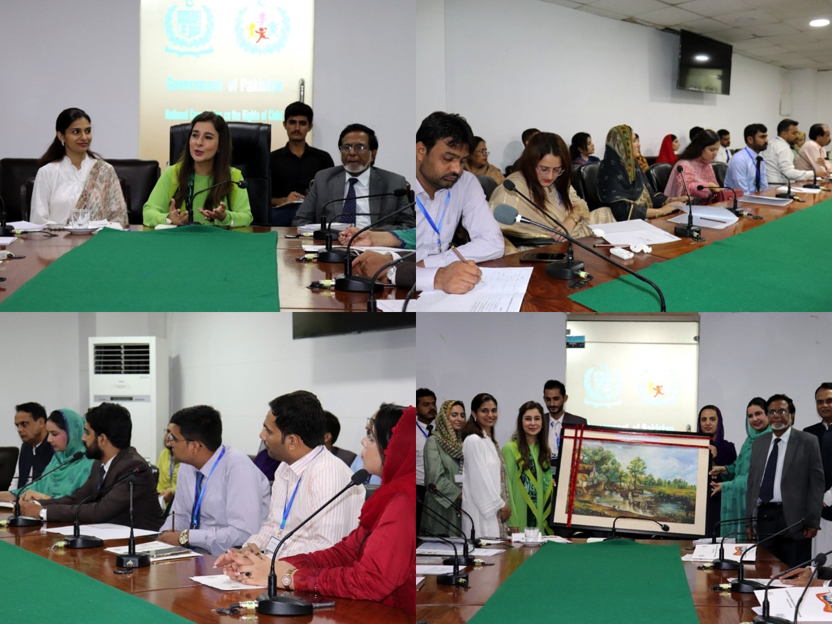 A delegation comprising 27 Social Welfare Officers, undergoing post-induction training at Social Welfare Training Institute Lahore visited National Commission on the Rights of Child (NCRC) Islamabad. Ms. Ayesha Raza Farooq, Chairperson NCRC warmly welcomed the participants. She emphasized the collaboration between the Social Welfare Department and NCRC to ameliorate the plight of vulnerable children. Ms. Lubna Jabeen, Principal Social Welfare Training Institute gave an overview of the social welfare services being provided by the department.