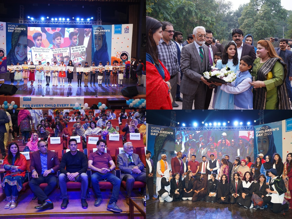 Social Welfare Department Punjab in collaboration with UNICEF organized a special event in connection with World Children's Day 2023 to increase awareness of the rights, care and education of children. The event showcased performances by children including puppet Show, painting & declamation contest, quiz and theater. Minister SW Prof. Dr. Javed Akram, Secretary SWD Zahoor Hussain, DG Social Welfare Muddassir Riaz Malik, Former Cricketer Aaqib Javed and CEO Lahore Qalandars Atif Rana and other dignitaries graced the event and distributed gifts among children. Director Programs Zaib Waseem, Director Planning Muhammad Suleman, officers of various departments and a large number of children were also there