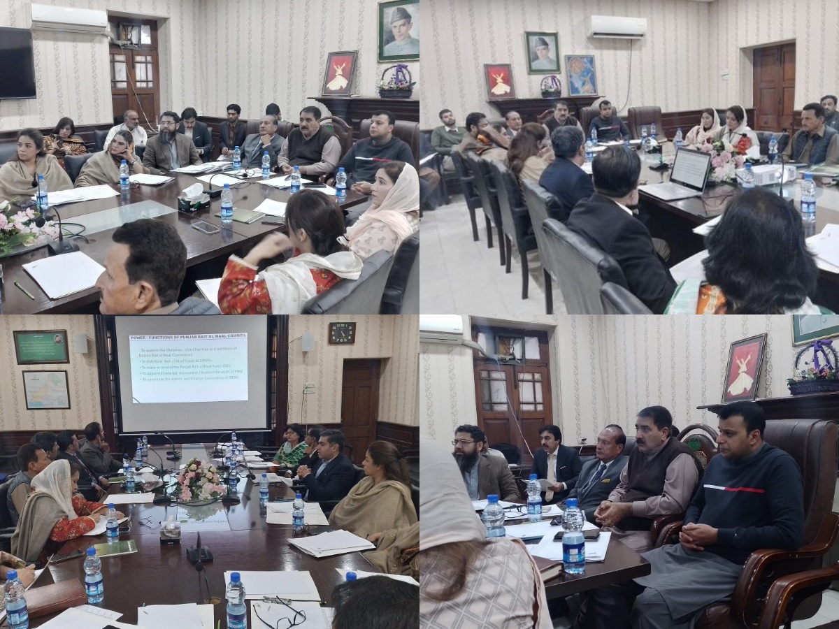 The meeting of Provincial Bait-ul-Maal Council held under the Chairmanship of Ahsan Jahangir, Amin Bait-ul-Maal. The Minister SW&BM Ghazanfar Abbas Chheenah and Secretary SW&BM Mehr Muhammad Hayat Lak also attended the meeting. Mr. Muhammad Ahmad Director General SW&BM as Secretary Bait-ul-Maal Council shared taken initiatives. The Minister SW&BM shared that the Chief Minister Punjab approved the increase in funds of Bait-ul-Maal from 100 Million to 500 Million and Marriage grant also increased from 20,000 to 100,000/-. Council also nominated Chairperson of the Finance Committee and Chairman of the Admin Committee.