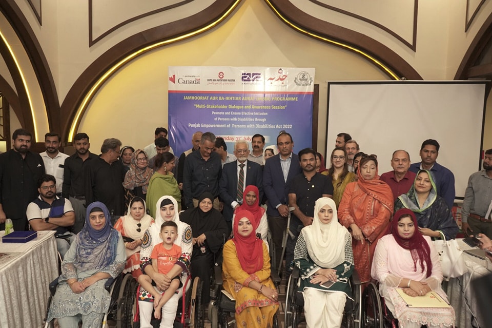 A multi-stakeholder dialogue & awareness session was organized to promote and ensure effective inclusion of persons with disabilities (PWDs) through Punjab Empowerment of Persons with Disabilities Act 2022. The event was jointly organized by South Asia Partnership Pakistan and Social Welfare & Bait-ul-Maal Department Punjab. Provincial Minister Social Welfare Dr. Javed Akram & DG Social Welfare Punjab Muddassir Riaz Malik addressed the participants on the occasion.
