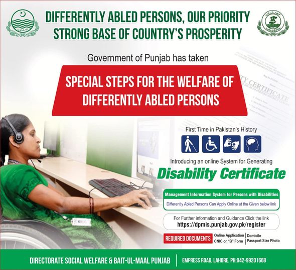 First time in Pakistan's History introducing an online system for obtaining Disability Certificate