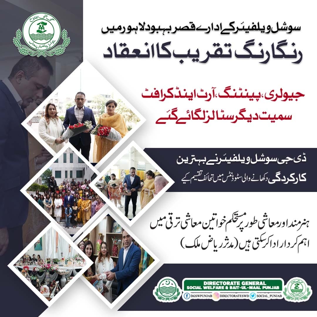 An assessment activity held at 'Qasar-E-Behbood' Lahore .Director General SW&BM Muddassir Riaz Malik participated as chief guest. The chief guest appreciated the products produced by the women trainees and also distributed gifts among the best performers.