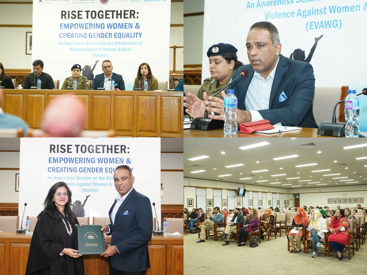 An Awareness Session on the elimination of Violence Against Women & Girls was arranged at Shaikh Ahmad Hassan School of Law, LUMS. Director General Social Welfare & Bait-ul-Maal, Punjab Muddassir Riaz Malik, Prof Uzair Kayani, HOD SAHSOL, Ammara Athar, CTO Lahore, academicians, stakeholders and a large number of university students attended the event. The participants discussed the Social Protection support to Victims of Gender-based Violence and role of government departments and law enforcement agencies.