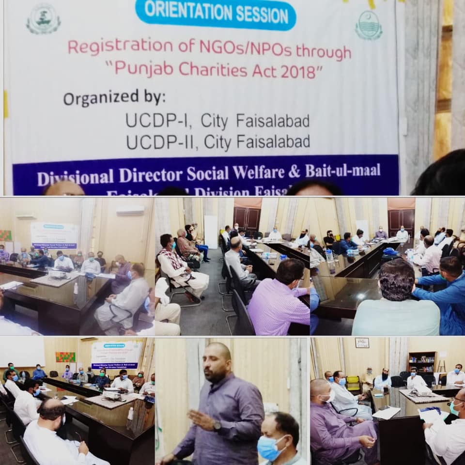 2nd Orientation session of NGO’s arranged by UCDP-1 and UCDP-2, city Faisalabad regarding Punjab Charity Act, 2018 under the supervision of Mian Muhammad Zahid Div. Director Fsd Division and Khalid Bashir Deputy Director Faisalabad,dated 04-07-2020
