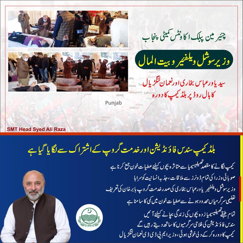 Provincial Minister for Social Welfare and Chairman Public Accounts Committee Punjab Syed Yawar Abbas Bukhari visits blood camp at Hall Road ,dated 24-01-2021