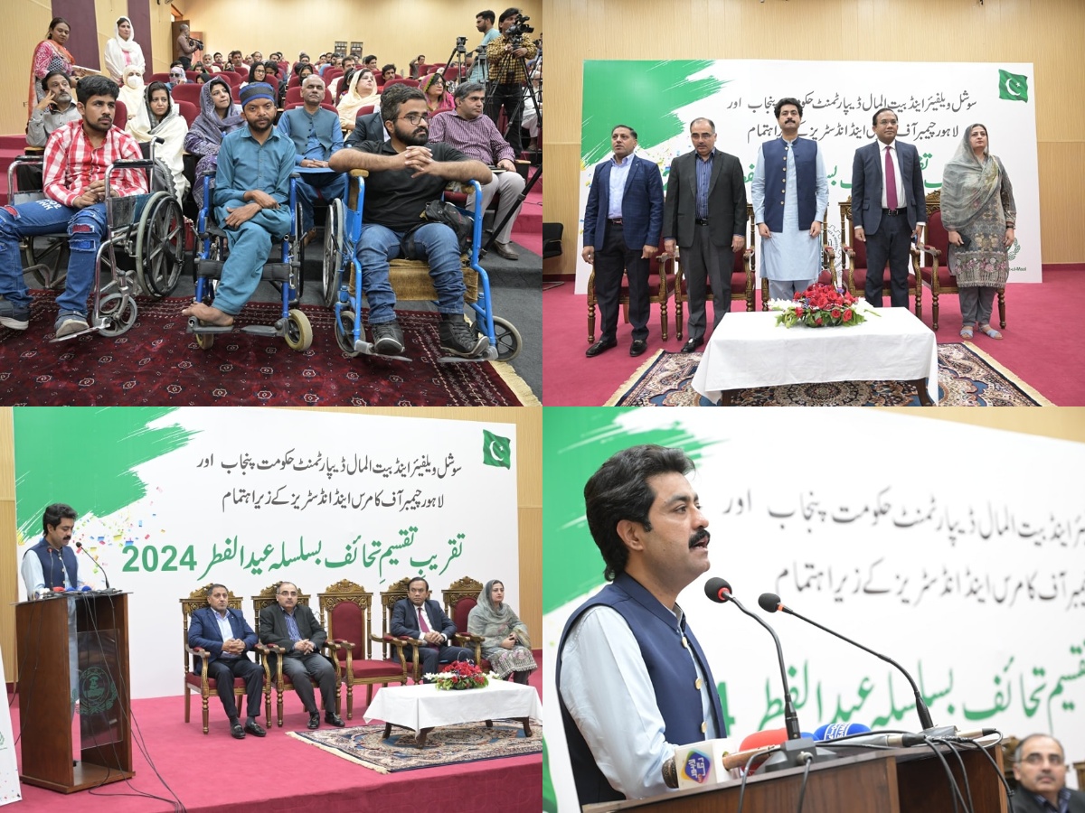 Social Welfare & Bait-ul-Maal department Punjab in collaboration with Lahore Chamber of Commerce Industries organized an Eid gifts Distribution ceremony at Social Welfare Complex for the residents of the Social Welfare institutions. Provincial Minister Social Welfare & Bait-ul-Maal Sohail Shaukat Butt honored the event as chief guest, Secretary Social Welfare & Bait-ul-Maal Iqbal Hussain, President Lahore Chamber of Commerce and Industries Kashif Anwar were along with him. Director General Social Welfare and Bait-ul-Maal Amina Munir welcomed the guests and thanked the Lahore Chamber of Commerce for supporting the gift distribution ceremony. On this occasion, various gifts including clothes and accessories were distributed among the children, widows, elderly and special people living in social welfare institutions. While addressing the audience, Provincial Minister Social Welfare Sohail Shaukat Butt said that the Social Welfare Department is trying to bring positive change in the lives of poor and vulnerable sections. He also announced the provision of medical health unit facility in Social Welfare Complex. Later, the Provincial Minister along with Secretary and DG Social Welfare visited institutions.