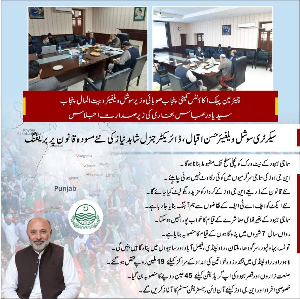 Meeting chaired by Provincial Minister for Social Welfare and Bait ul Maal Punjab Syed Yawar Abbas Bukhari , dated 05-01-2021