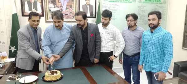 Cake cutting by Ghazanfar Abbas Chheenah, Minister SW&BM, in connection with the birth anniversary of the country’s national poet and philosopher Dr Allama Muhammad Iqbal.