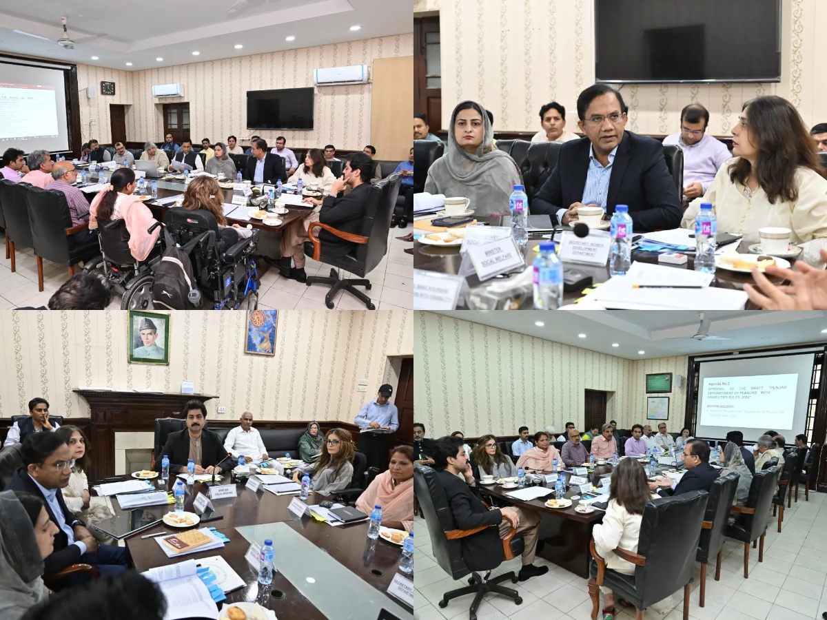 A meeting of the COUNCIL ON RIGHTS OF PERSONS WITH DISABILITIES was chaired by Minister Social Welfare & Bait-ul-Maal Punjab Sohail Shaukat Butt. Secretary Social Welfare Department Punjab Iqbal Hussain Khan, Secretary Women Development Sumaira Samad, Council members, DG SW&BM Amina Munir and key stakeholders attended the meeting. Different agendas were discussed in the meeting including confirmation of previous meeting's minutes, proposals for new policies and initiatives, approval of administrative& financial matters, draft Rules, implementation of 3% Job Quota for PWDs and Human Resource Management for council. The council reiterated its commitment to promoting and ensuring the effective inclusion of PWDs and protecting their rights in line with the CONSTITUTION OF PAKISTAN and the "PUNJAB EMPOWERMENT OF PERSONS WITH DISABILITIES ACT 2022".