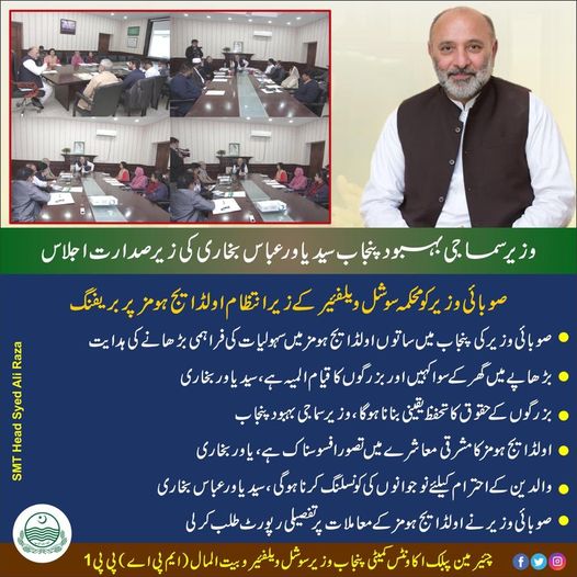 صوباٸ وزیر سوشل ویلفیٸر و بیت المال، چیٸرمین پبلک اکاٶنٹس کمیٹی پنجاب سید یاور عباس بخاری نے اولڈ ایج ہومز کے معاملات پر تفصیلی رپورٹ طلب کر لی