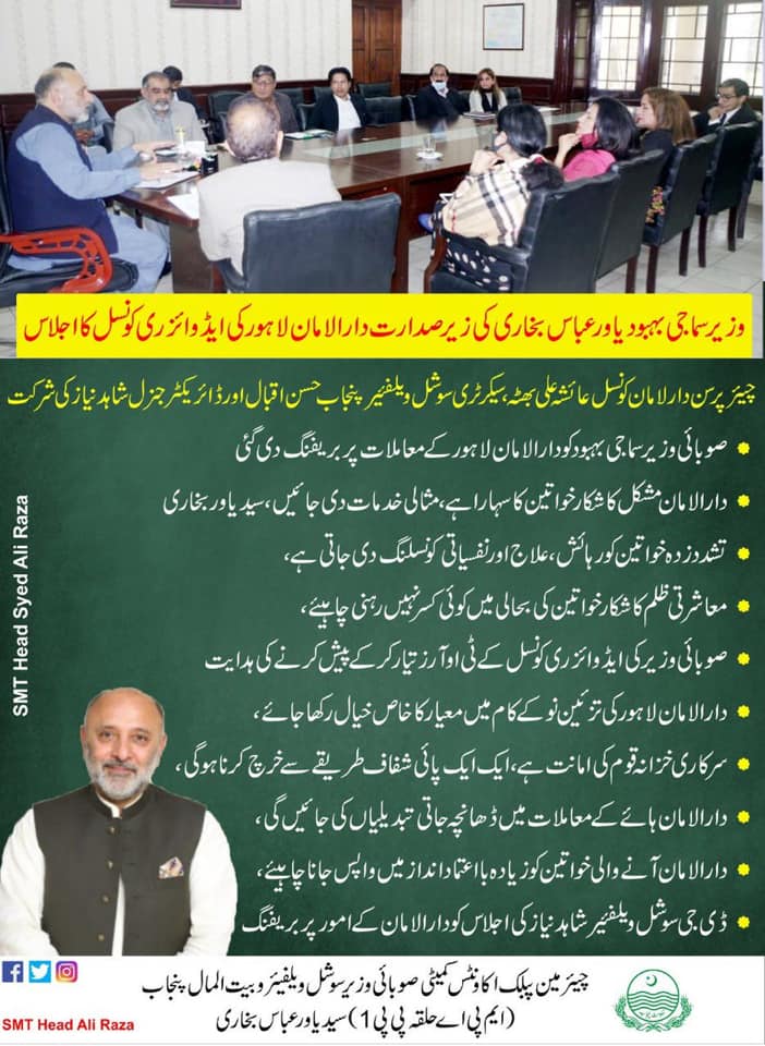 Meeting of Advisory Council of Darul Aman Lahore chaired by Minister of Social Welfare Yawar Abbas Bukhari