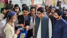 Minister SW & BM distributed essential supplies among flood-affected families in Sohdra and Gujrat.