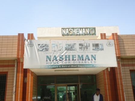 Home for Special persons (Nasheman) was established in 1989 at Social Welfare Complex, Township Lahore with the objective to provide professional care, training and rehabilitative services to persons with disabilities. Besides this, it is also envisaged to provide placement services after training along with counseling and follow up. Presently the institution has capacity to accommodate 100 residents including 50 Day Scholars and 50 Boarders. Currently Nasheman (Home for Disabled) working in Punjab. Other than Lahore, one at Bahawalpur and one at Faisalabad.