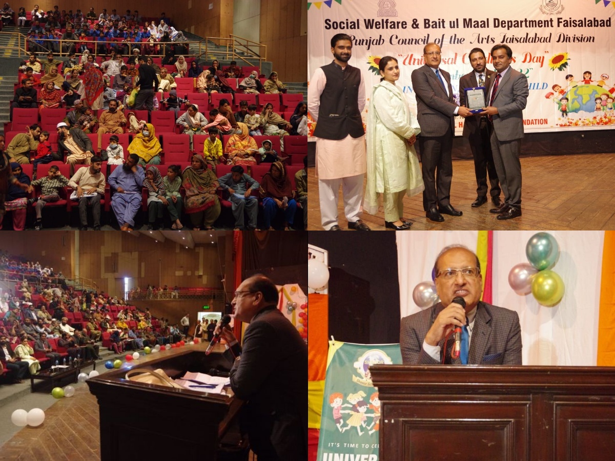 Worthy Mehr Muhammad Hayat Lak, Secretary, Social Welfare & Bait ul Maal, Punjab was the chief guest of the ceremony held at Faisalabad on the occasion of Universal children's day. Officers of the Department, NGOs, and students also participated. The cheque distribution ceremony for Special Children was also held. "INCLUSION OF EVERY CHILD"